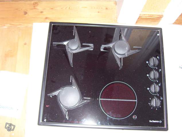 plaque DE DIETRICH W1220F1 VITROCERAMIQUE (dessus verre) 3 FEUX GAZ I FEU RADIANT NEUVE