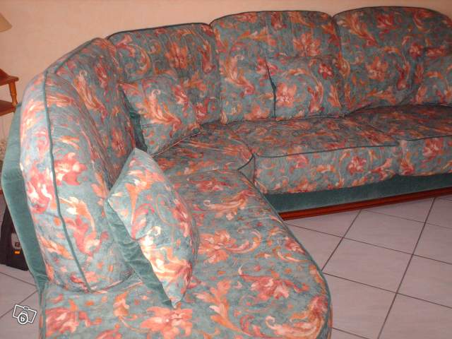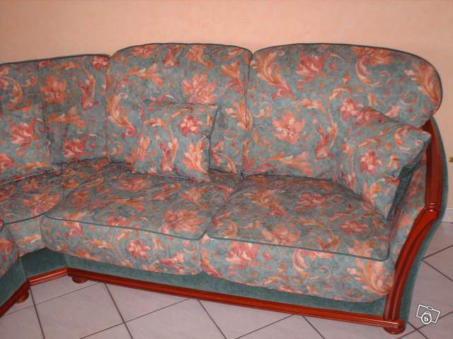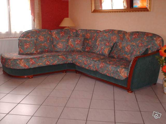 canapé d'angle 7 places avec 4 cousins en très bonne état