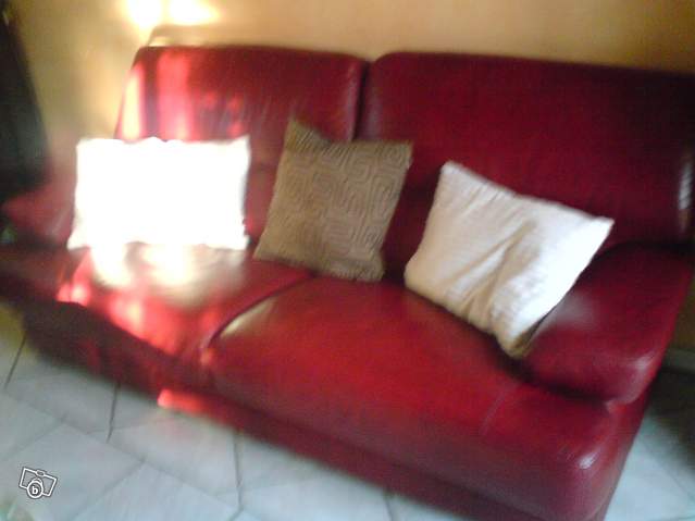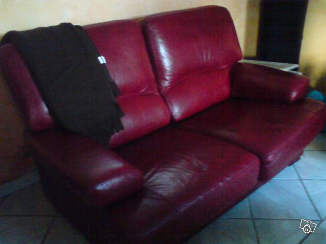 VEND CANAPÉ EN CUIR BUFFLE TROIS PLACES + 2 PLACES COULEUR BORDEAUX EN BON ETAT