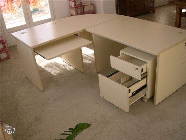 a saisir bureau d'entreprise en excellent état couleur beige clair avec coin multimédia et caisson 2 tiroirs avec fermeture a clé