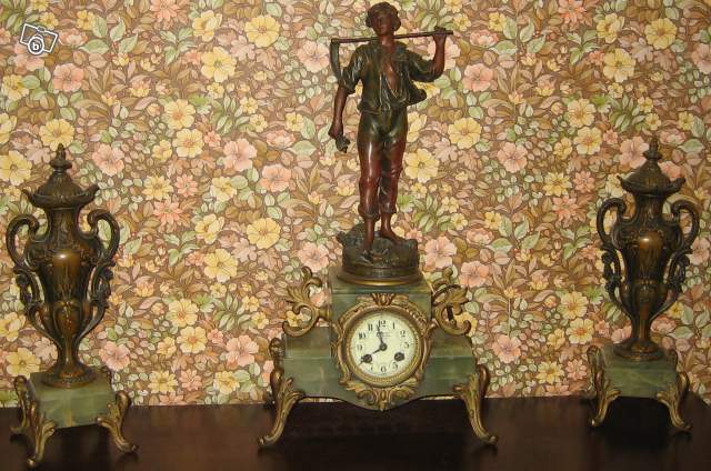 Ensemble ancien d'une pendule de cheminée et ses deux urnes