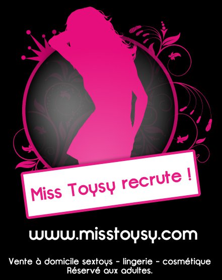 Je serais votre conseillère Miss Toysy pour vous présenter ma collection Lingerie , cosmétiques , huiles aphrodisiaques et bien-sur les objets coquins , je me déplace gratuitement , pour un anniversaire , une surprise à un ou une ami(e) , un départ en retraite , un enterrement de vie de jeune fille , etc ...