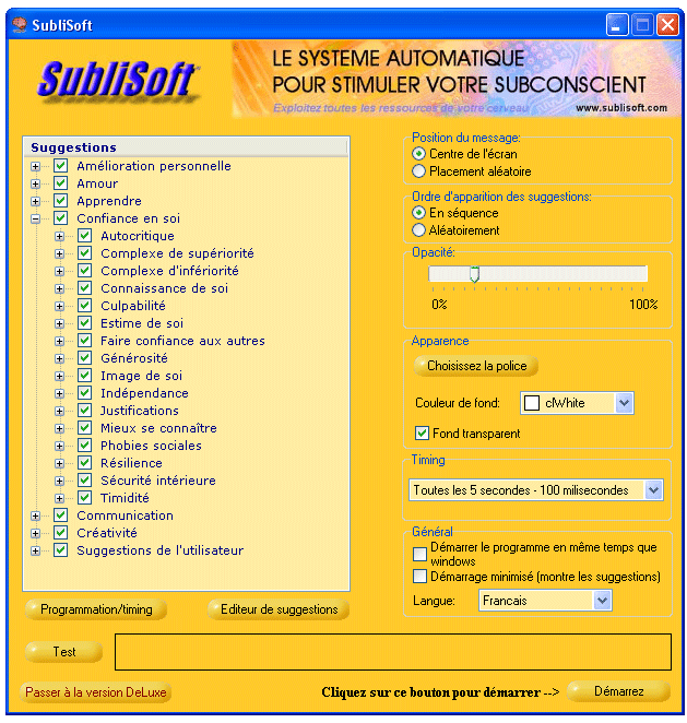 | Sublisoft le logiciel qui stimule votre subconscient | ||||||