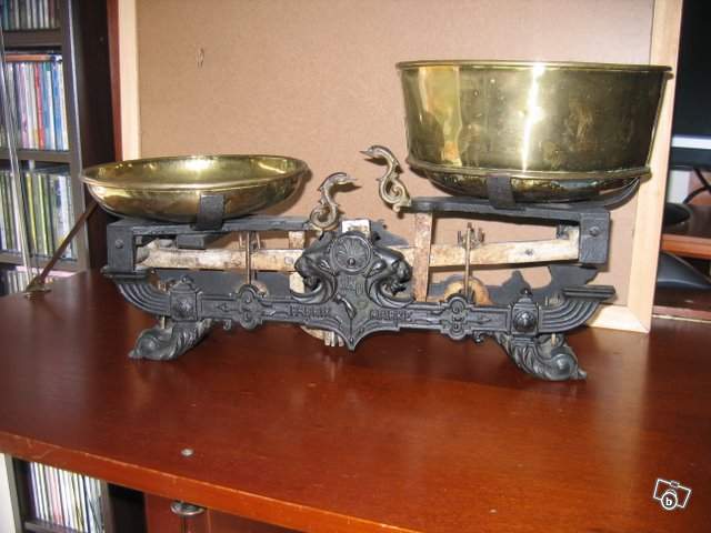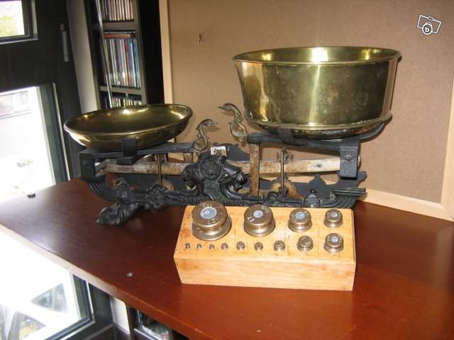 Vend Balance Roberval avec plateaux cuivre et jeu de poids complet visible Turckheim / Colmar 68230
