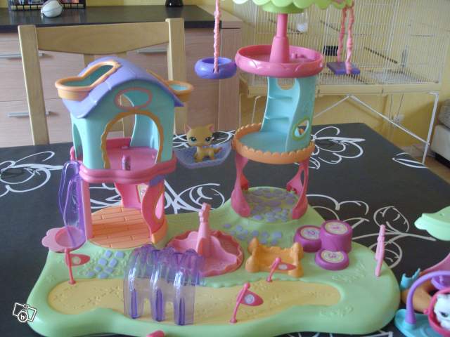 Superbe aire de jeux petshop avec un accessoire supplémentaire et 2 petshops.