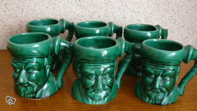 | 6 choppes à bière en céramique représentant un vieillard barbu | ||||||