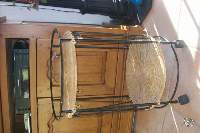 vends petit guéridon ou meuble déco en fer et osier sur roulettes