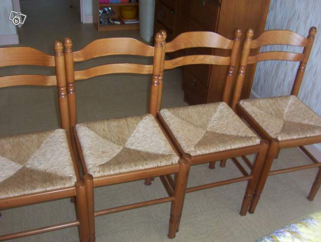 cause déménagement table ronde 4/6 personnes avec pied central + 4 chaises en paille le tout très bon état. (dim. diam. 1.20. hauteur 0.76. dim. chaise 0.37 par 0.37.) la table sans les chaises 50 euros. règlement en espèce uniquement.