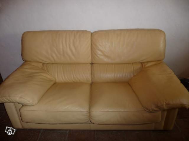 | Canapé cuir vachette , couleur ocre jaune. | ||||||