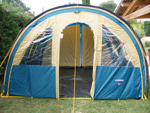 Cause double emploi, je vends une Tente tunnel haut de gamme 5 places (3+2) MARECHAL Modulo 5 ignifugée NEUVE, montée une seule fois pour prise de photographies avant mise en vente, tente solide, durable, modulable, faite pour un campeur exigeant qui cherche qualité et légèreté.