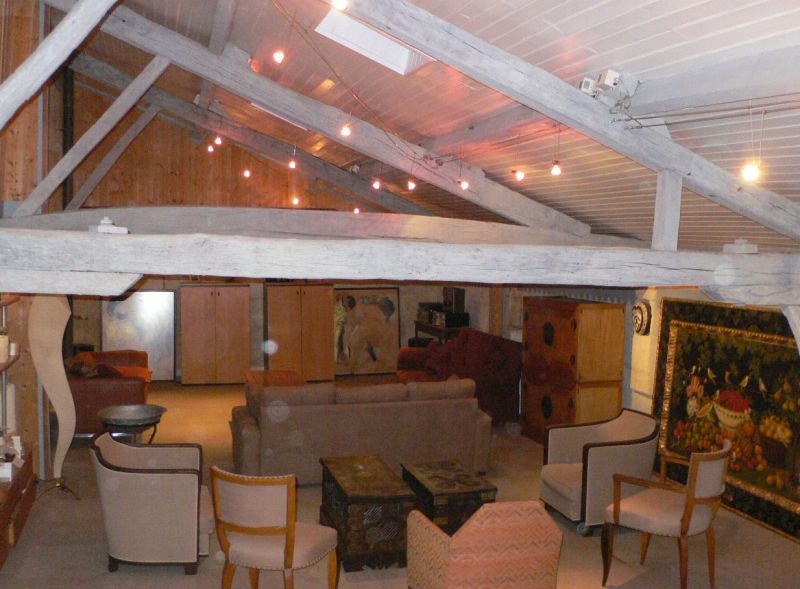 Salon avec cheminée, poutres apparentes et placards anciens intégrés : 25m²
