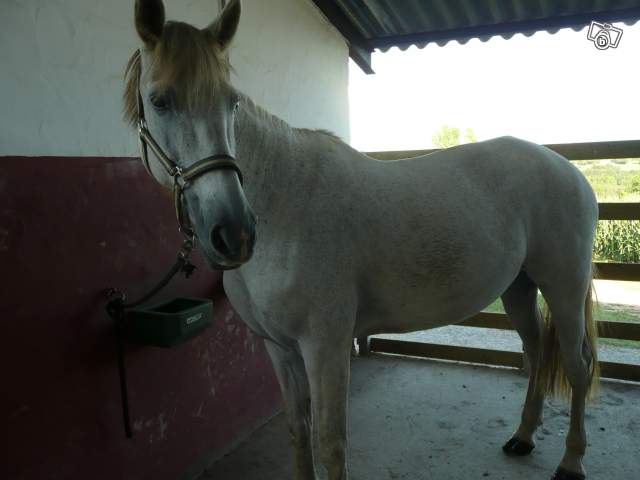 gentille jument gris truité 1m60 |